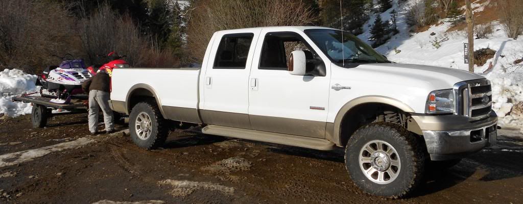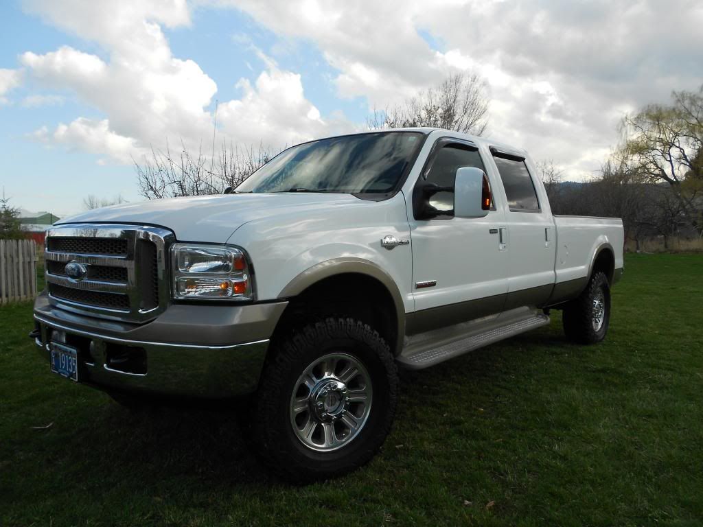 I bought a 2006 F350 XLT Crew Cab Short Bed, Snow Plow Prep Package, power windows, locks, air, cruise, tilt, rear manual slider, power heated mirrors with signals, factory steel 18" rims (hate the look of those things), auto lock hubs and electric 4x4 shift. Overall pretty nice truck. Body needs work. rust spot on drivers side of the bed above the wheel, driver front corner needs a new fender and headlight, bumper and white valance above the bumper, PO hit a pole or something. Also could use a new tailgate, for cosmetic purposes. It needed tires when i bought it, and i decided it would be a good time to get new wheels and tires at the same time. i bought Moto Metal MO951 rims, 18x9 -12mm offset. I really like the way the wheels sit on the truck. look good, and stick out just far enough for me. I bought 305/70/18 Mastercraft Courser MXT tires. I was told they are equal to a 35/12.50 tire, and was also told they would fit with the Snow Plow package. Problem is, they rub just a little on the lower front bumper valance and on the rear splash guard (closer to the cab). I dont like that. its not right, and i want it fixed. The only option i seem to know of is to lift (breaks my lil heard to have to lift my truck... LOL) so ive decided on either the 3" Rough Country or the 2.5" SkyJacker. my question is, will replacement coil springs actually add lift if i have the snowplow springs? or would a leveling kit and an add a leaf be better?